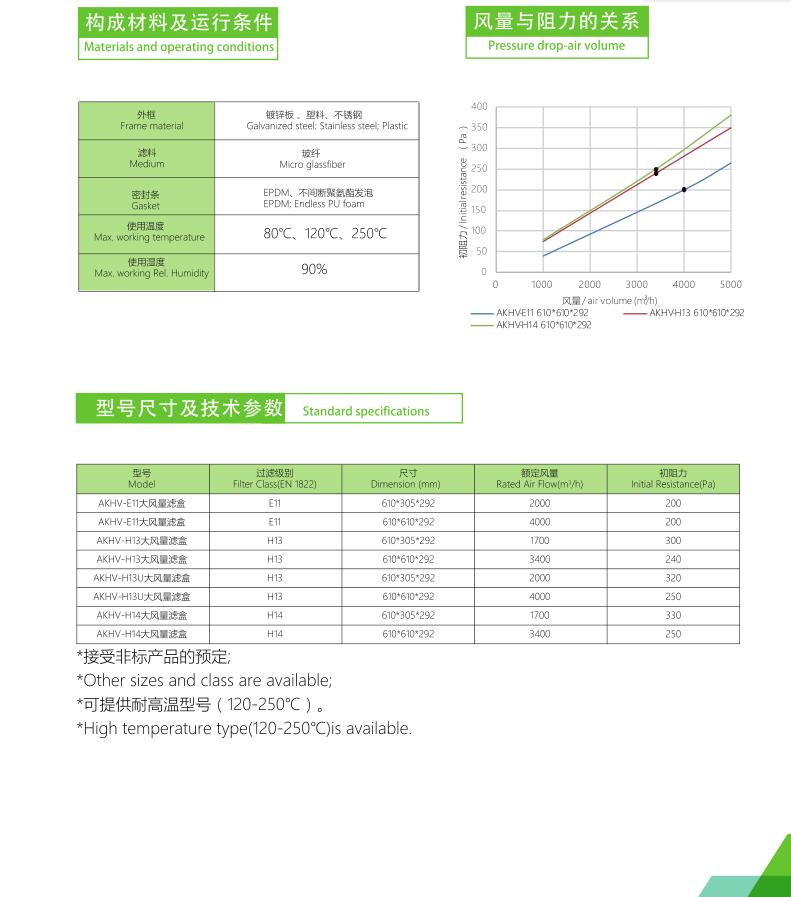 适用于空调机组、排风净化系统的终端过滤及各种大风量空气净化设备