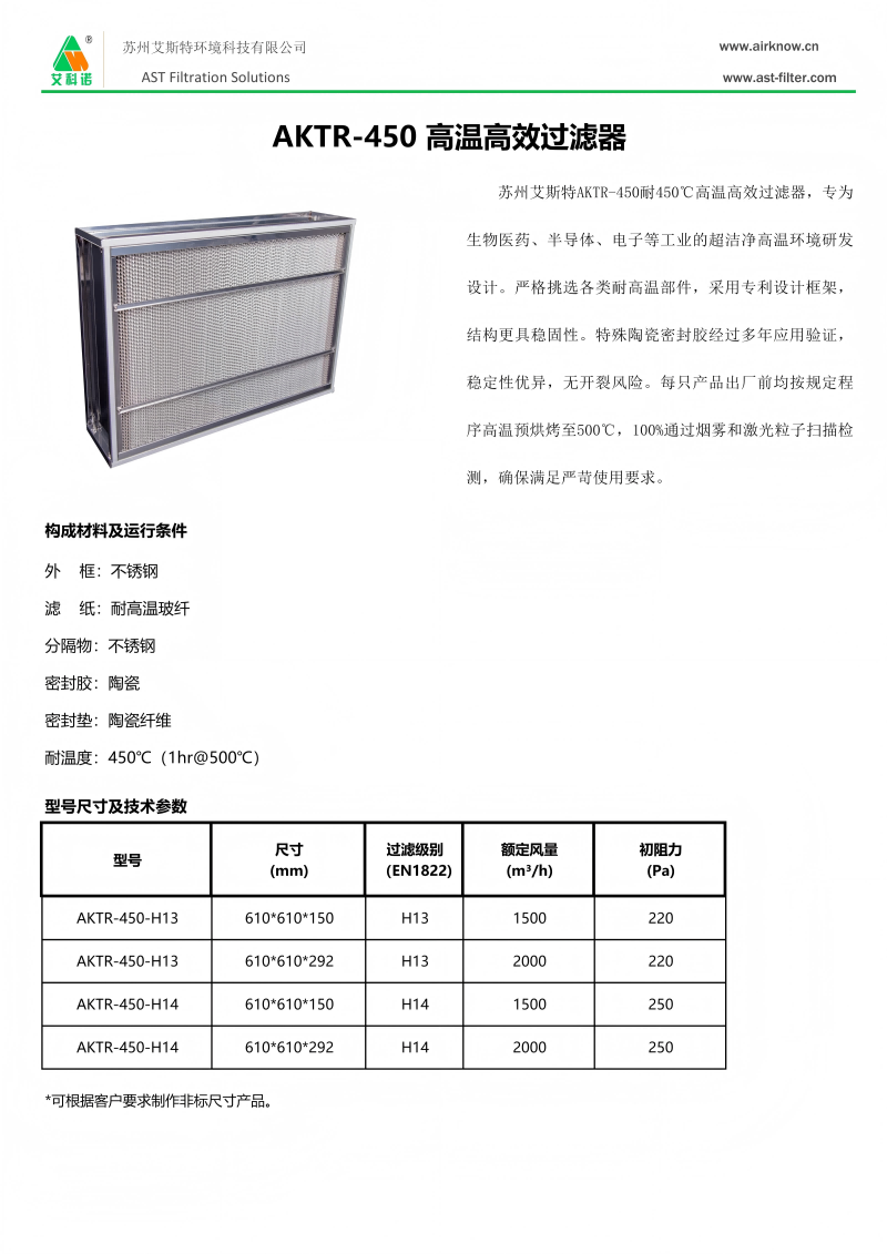 AKTR-450 耐450℃高温高效过滤器