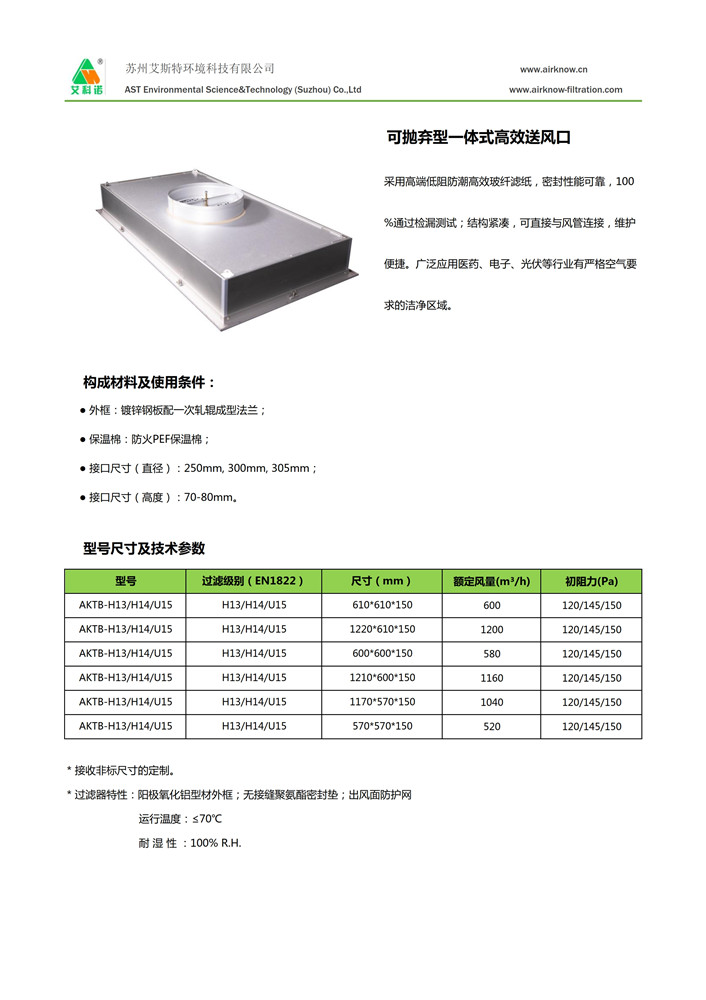 选用不锈钢、铝、冷板喷塑等主材,配合优质高效过滤器。