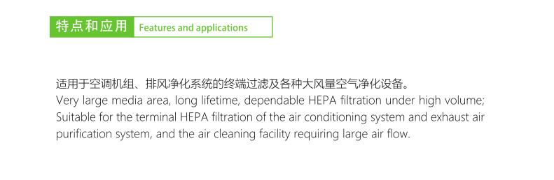 适用于空调机组、排风净化系统的终端过滤及各种大风量空气净化设备