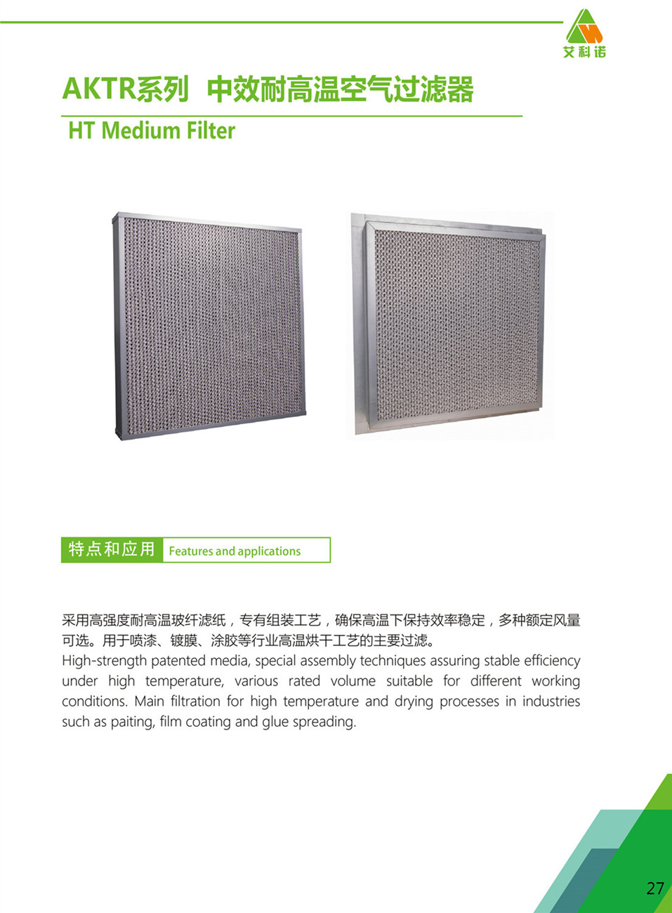 用于喷漆、镀膜、涂胶等行业高温烘干工艺的主要过滤。