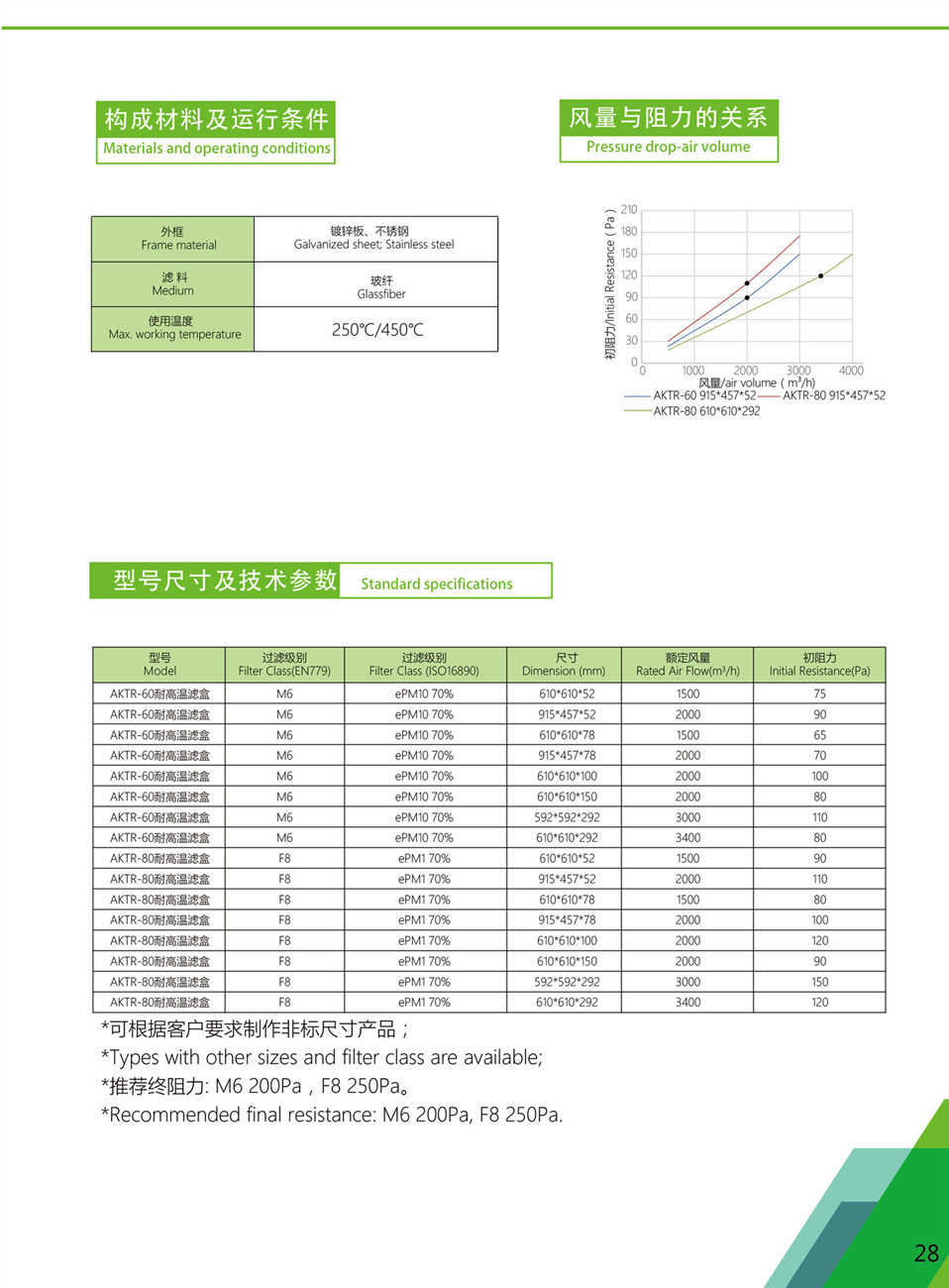 采购高强度耐高温玻纤滤纸,专有组装工艺,确保高温下保持效率稳定。多种额定风量可选。